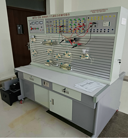 MYYA-23A液压与气动综合控制实验装置是高校机电一体化对气、电、液控制的教学大纲要求,在液压传动演示系统的基础上,综合了气动PLC与液压PLC控制实验设备的优点,采用了开放型综合实验台结构,广泛征求专家教授与老师的意见,经不断创新改进研制而成的。是目前集气动控制技术、液压传动控制技术以及PLC可编程序控制器控制技术于一体的理想的综合性实验设备。实验时,它们可以相互辅成,交叉控制。可以让学生直观感性地对比与了解气、电、液各自具有的特点、特色、及优缺点等。