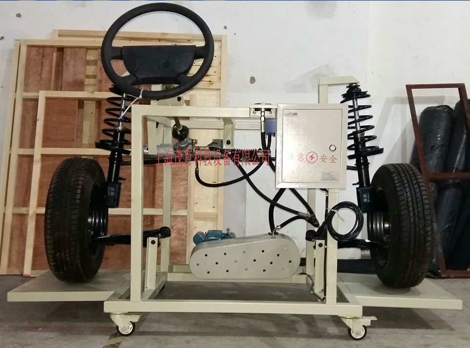 捷达动力转向实训台由轮胎、钢圈、减振器、方向机、动力泵及油管、压力表、前独立悬挂方向盘彩用三相电机驱动,助向泵工作车身重量模拟调节移动钢台架(喷塑)等组成。充分展示汽车动力转向的组成结构和工作过程。利于学员对汽车动力转向实物的认识。使学生了解汽车动力转向起到更直观更深入的教学目的,适用干中高等职业技术院校、普通教育类学院和培训机构对汽车底盘的理论和维修实训的教学需要。