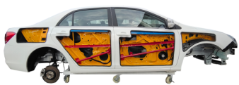 1.保留车壳与车身电器低压系统各部件,保留电气连接方式与原车功能,可实现线束与电器插拔拆卸训练,仿真真车情境低压电器系统检测与维修。