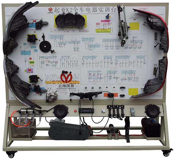 起亚K5全车电器电路实验台采用起亚K5全车电器实物为基础,全车电器实验台展示灯光系统、仪表系统、点火系统、起动系统、充电系统、发动机电控系统、喇叭系统、电动车窗系统、电动门锁系统、雨刮系统、音响等各系统的组成结构和工作过程。适用于中高等职业技术院校\普通教育类学院和汽车培训机构对汽车全车电器系统的理论和维修实训的教学需要。通过电路电器实训台的演示,可清楚了解轿车内部的电路电器结构与功能,便于学生较快地掌握轿车的电路构造和原理,提高学生对轿车电路的初步认识,使学生了解整车电路起到更直观更深入的教学目的,是各汽车学校对电路电器理论和维修实训的理想的教学设备。本设备满足汽车职业教育的“五个对接十个衔接”的教学需要。