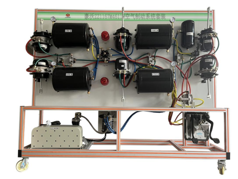 1、台架上具有的全新豪沃ZZ1167M4611W原车零部件有空气压缩机总成、空气干燥剂、前桥储气筒、后桥储气筒、手制动储气筒、再生储气筒、辅助储气筒、四回路保护阀、制动脚阀、驻车阀、继动阀、制动管路、气压表若干个。