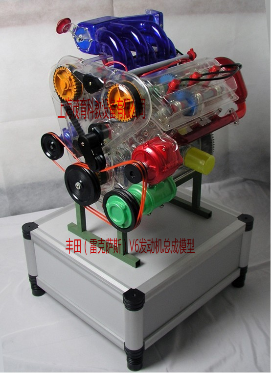 雷克萨斯V6发动机教学模型采用进口有机玻璃及工程塑料、铸铝汽车部件等,用模具一次成型铸造。电机驱动、透明直观,内部结构清晰,可清楚地了解发动机内部各部件的机械结构的功能与作用,其中供油泵,冷却系润滑作示意,点火起动装置插入220V电源,整机可自动演示,便于学员较快地掌握专业知识。模型以实物0.8制作,外形尺寸:60×46×65cm ,电源使用AC 220V ,重量:15kg