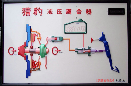 中等职业学校猎豹CJY6470汽车电教板采用铝合金框架结构,电教板表面采用彩色有机玻璃压模成型,线路流向灯光演示,程控教鞭控制,转动式字幕显示。