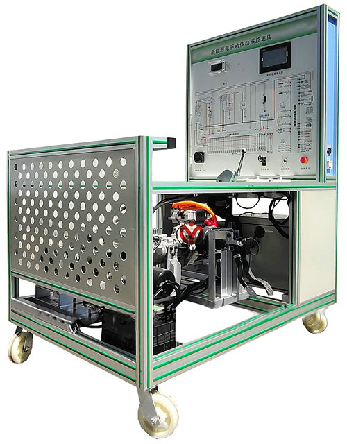 磷酸铁锂动力电池包及管理系统(带CAN通讯,含24单体电池,放电继电器,充电继电器,预充继电器,预充电阻,霍尔电流传感器,维修开关,保险,充电接口,放电接口,低压控制接口,动力电池采集模块,BMS电池管理系统主控模块,7寸液晶显示屏)、驱动电机及运行部分、电子油门总成、换挡机构总成、仪表(带CAN通讯)、变速箱、左右传动轴、左右前轮碟刹、磁粉制动器(左右)、手动张力控制器,助力器带泵总成,真空泵总成、电动真空助力刹车系统、真空压力传感器、真空罐总成、国标充电插口与充电枪、车载充电机(带CAN通讯)、DC-DC模块、故障设置系统、辅助蓄电池(12V45AH)、蓄电池断电开关、急停开关、上位机软件及数据线(电机与电池控制单元)、一体化全铝合金型材搭建的移动台架(1500×1000×1700mm ,带自锁脚轮装置,带安装检测端子的原理面板948×898mm)、故障考核系统、设备操作说明书。