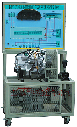 该设备采用本田MPOA自动变速器总成、自动变速器控制单元、挂档杆总成、变速器油散热装置、组合仪表、三相调速电机、节气门体总成、发动机曲轴传感器及信号盘、诊断座、压力表、故障设置系统、原车电路原理图板及检测端子、移动台架等。配任务驱动教学模式的实训指导书及台架操作说明书。