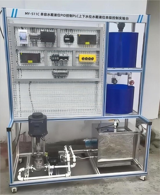 MY-511C单容水箱液位PID控制实验和PLC上下水箱液位串级控制实验台利用自动化仪表技术,计算机技术,通讯技术和自动控制技术,以实现对水箱液位的串级控制;通过PLC编程等方式实现对液位的串级PID控制;系统的控制效果既可通过水箱刻度直观地反映出来,也可通过传感器进行精确检测,通过软件显示瞬态响应指标进行对比,以便准确评估控制性能,并提供二次开发功能。