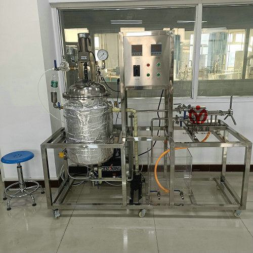 8、测温元件:采用数显控制仪表,反应釜为夹套加热、反应釜搅拌电机功率为 120 KW,有效容积为30L,搅拌器转速为0~900转/min连续可调,水槽容积为15L;加热温度200度。