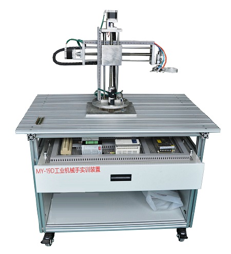 MY-19D工业机械手实训装置为坐标式机械手,可完成机械手旋转、手臂垂直上下移动、手臂水平移动,手爪旋转四个自由度的位置精确控制;同时配置晶体管式可编程控制器,用于对整个机械手进行复杂的位置控制。通过在该实训装置上的实训和操作,学生可熟练掌握PLC高级指令、传感器、旋转编码器、气动控制、步进电机、气动手指、直流减速电机、精确机械位置传动等技术的综合应用。