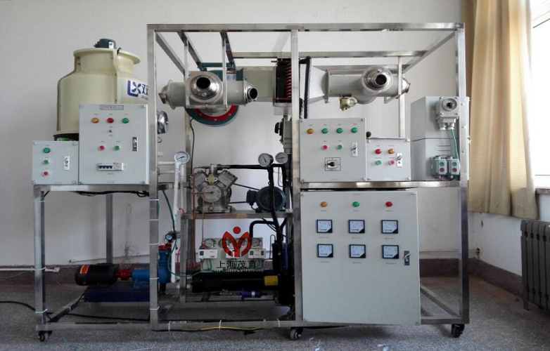 实训装置主要由控制台、水冷制冷机组、高温风机,风机管道,管道调节阀门、主机实训模块、连轴式冷却水泵,冷却塔,温度和压力传感器等组成温度和压力表等组成