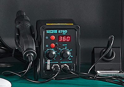 2、热风枪焊台1套。包含热风枪1个,恒温烙铁和烙铁架1套。