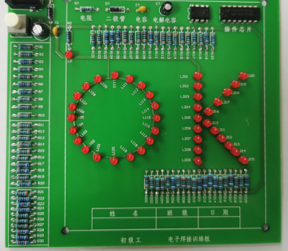 初级功能训练板焊接主要教会学生直插元器件认知、元器件整形、插件、焊接等技能。