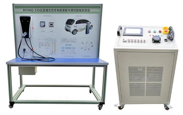 MYXNQ-33D比亚迪交流充电桩装配与调试检验实训台选用新能源汽车比亚迪原厂7KW交流充电装置系统真实器件制作,可展示充电桩的结构与工作原理,适合于各类院校对充电桩理论和维修实训的拆装与维护、结构与原理认知、系统操作、功能动态演示、故障检测与诊断教学需要。