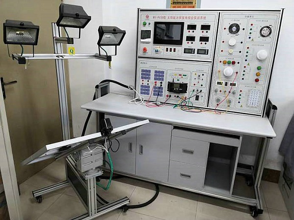 太阳能光伏发电综合实训系统系统主要提供于职高、大学、研究生、企业技工以太阳能发电为主课题的研究和培训;设备由模拟太阳灯、太阳能电池板、二维跟踪机构、光伏控制器、储能蓄电池、负载、仪表及工控电脑等组成。