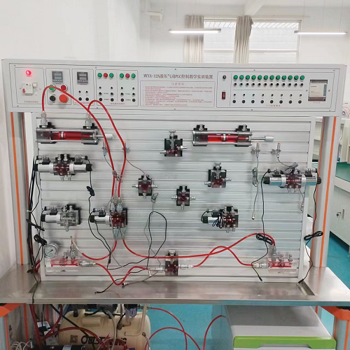 该实验台是根据《液压气动传动技术与实训》、《气动控制技术》等通用教材设计而成,适用于机械类、机电类本科生课程实验和毕业设计(论文)。采用可编程控制器(PLC)和工业气动元件、执行模块为一体,除可进行常规的气动基本控制回路实验外,还可以进行气动-电气控制回路应用实验、气动-PLC控制回路等气动技术课程设计。
