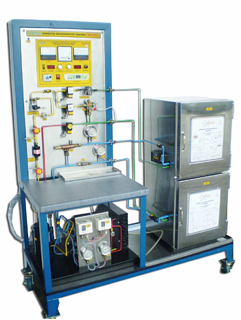 MYKT-03D一机两库系统综合实训装置是专门用于职业技术学院制冷专业进行实训和实验,一机二库,是指利用一台制冷机组,同时向两个需要不同库温的库房供应冷量。