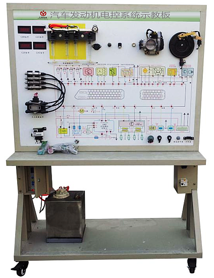 2、示教板面板采用耐创击、耐污染、防火、防潮的高级铝塑板,表面经特殊工艺喷涂底漆处理;面板打印有永不褪色的彩色电路图与工作原理示意图;学员可直观对照电路图和实物,认识和分析发动机电控系统的工作原理。