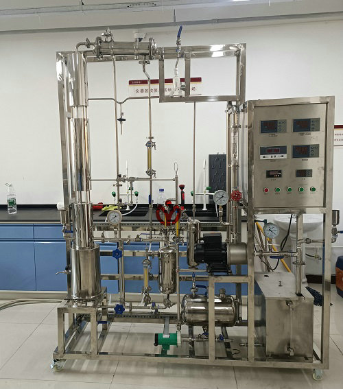 本装置主要配置:精馏塔、冷凝器、再沸器、压力表、U型压差计、液体流量计、离心泵、各种阀门和管件、各种仪表、不锈钢框架、控制屏。