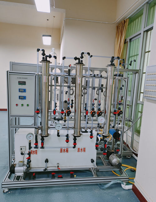 | 技术参数 | 1、预过滤器:20英寸5μm粗滤器,数量2个。 2、反渗透膜组件采用采用4040型膜,膜直径:φ100mm;长度:1014mm;脱盐率:95%;最大压力:3.16MPa。采用不锈钢压力容器。 3、超滤膜组件:聚丙烯中孔纤维,孔径:0.01—0.3μm,孔隙率:50%-55%,截留分子量:5万,使用温度:44℃-73℃;最大工作压力:4Kg/cm2,出水量为60-600L/h。 4、纳滤膜组件采用4040型膜,不锈钢外壳,进水pH值3.0—10,最高进水温度45-80℃。采用不锈钢压力容器。 5、微滤膜组件:块状炭+工程塑料外壳,出水量250-2500L/H,孔径0.2μm。 6、电导率仪测量:安装设备管道上测量原水和淡水出口的浓度变化。共计2台在线电导率仪,量程0-1999μS/cm。 7、微滤膜出水流量:管式流量计,测量范围60-600L/h。 8、超滤膜淡水和浓水流量:管式流量计,测量范围25-250L/h。 9、反渗透膜淡水和浓水流量:管式流量计,测量范围16-160L/h。 10、纳滤膜淡水和浓水流量:管式流量计,测量范围16-160L/h。 11、压力:不锈钢指针防震压力表,测量范围0-0.6MPa和0-1.0MPa。 12、不锈钢多级高压泵:额定流量2.0m3/h,扬程90m,功率0.75KW。 13、不锈钢离心泵:额定流量4.0m3/h,扬程20m,功率0.37KW。 14、原水槽:优质PP材质,底部设排尽口。 15、中间水箱:优质PP材质,底部设排尽口。 15、出水槽:优质PP材质,底部设排尽口。 16、管路:透明,壁厚≥2.5mm,透明可视材质。 17、反渗透高压保护开关,1.0MPa,自动复位,延时保护。 18、电压:380V,总功率:2.0kW。 19、电器:接触器、带灯开关、漏电保护空气开关。 20、外形尺寸:2000×550×2000mm(长×宽×高),外形为可移动式设计,带刹车轮,高品质铝合金型材框架,无焊接点,安装拆卸方便,水平调节支撑型脚轮。 21、工程化标识:包含设备位号、管路流向箭头及标识、阀门位号等工程化设备理念配套,使学生处于安全的实验操作环境中,学会工程化管路标识认知,培养学生工程化理念。 |