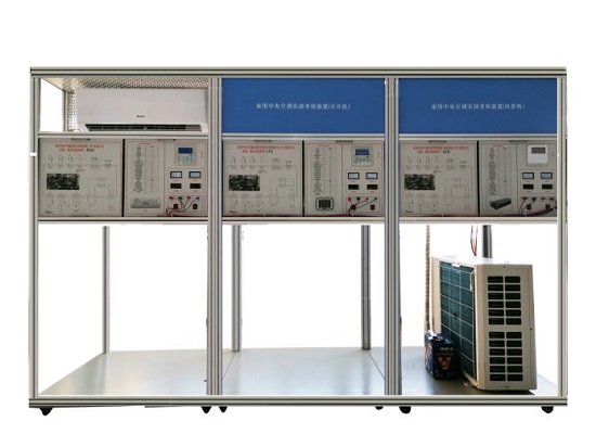 充分地展示了家用中央空调的结构形式、控制原理、系统不同工况时的参数变化及空调制冷系统流程图。数码一拖三机组1套:空调系统采用市场数码机组,室内机有终端处理机组组成。天井式(嵌入式)1套、挂壁式1套、风机盘管1套组成室内终端机组处理系统;让学生了解室内机组多样化的结构形式。每个终端机组处理系统都是相互独立的。