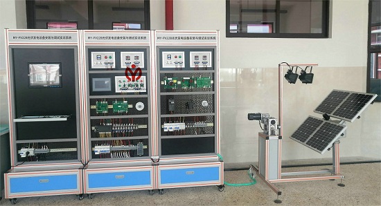 MY-PV22B光伏发电设备安装与调试实训系统由光伏供电装置、光伏供电系统、逆变与负载系统、监控系统四个部分组成。采用模块式结构,各装置和系统具有独立的功能,应用灵活,即可组合应用,也可独立工作运行。