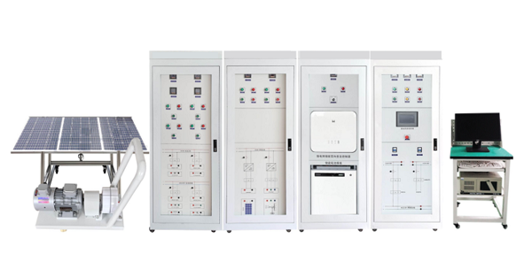 发电机电源模拟单元由永磁发电机组、拖动异步电机、智能汇流箱装调与检测模块、光伏组件等组成。发电机采用永磁发电机,通过异步变频电机进行拖动,可模拟发电机在不同工况下的发电输出;光伏发电单元由光伏组件和汇流箱检测模块组成,模拟光伏板或者真实光伏组件的各种特征;微电网分布式能源接入系统由光伏控制器、风力控制器、直流功率计量仪表、分流器、变频调速器、测试端子、通讯网关等组成。主要完成对分布式能源的接入、分布式发电的计量与保护。