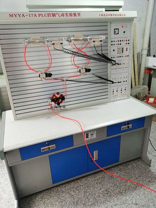 MYYA-17A 气动PLC控制实训装置是根据《液压与气压传动》《气动控制技术》等通用教材内容要求精心设计而成。该系统除了可以进行常规的气动基本控制回路实验外,还可进行模拟气动控制技术应用实验、气动技术课程设计,以及可编程序控制器(PLC)学习及其基本应用实验等,是机电结合的典型实验设备。