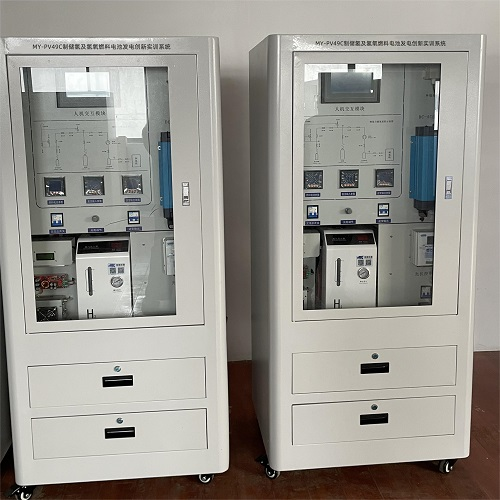 MY-PV49C制储氢及氢氧燃料电池发电创新实训系统是氢能产业链中的制氢、氢气储存、氢能管理利用这几个关键环节的有机组合和展现。制氢的能源采用清洁的光伏发电,这不仅解决了部分光伏发电就地消纳的问题,还使资源得到有效的利用。