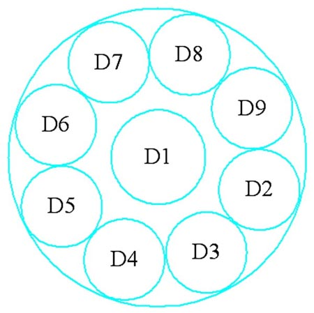 图3所示是太阳光电定位装置中光电检测电路的俯视图,共由9个光电三极管组成。正中央1个,旁边8个围成一圈。将此检测板用一不透光的下方开口的圆柱体盖住,圆柱体的直径略大于检测板的外圆。圆柱体的上方中央开一个与检测用的光电二极管直径相同的洞,以便光线通过。将整个光电检测装置安装在太阳能光电池板上,光电二极管的检测面与电池板平行。在圆柱体的外面不受圆柱体遮挡的地方(确保会受到光线的照射)也安装一个光电二极管,其朝向与圆柱体内的光电二极管朝向相同,用于检测环境亮度,并与圆柱体内的每个光电二级管及运放(可用lm324集成电路中的一个)构成一个比较电路。这样当圆柱体内的光电二极管没有受光线照射时,运放将输出低电平,此电平可接到的输人端进行检测,圆柱体内的每个光电二级管各用一个plc的输入端,共9个。这样就可以检测太阳光线的朝向,来决定哪个电机转动,向哪个方向转动。另外,为了增大光电二极管的检测范围,视实际情况需要,也可再增加一圈紧密排列的光电二极管,外圈的光电二极管与内圈的相应位置的光电二极管并联。