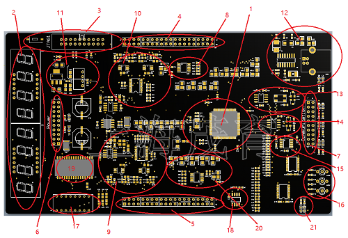 以上9个功能区域对应的功能每块电路板都一样,不再赘述。