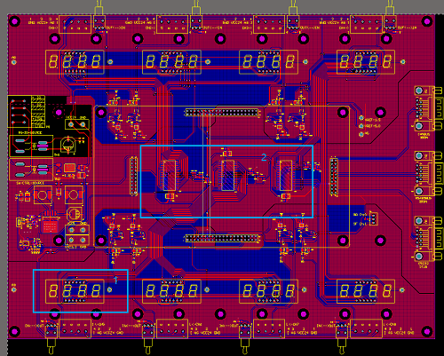 8)控制位置选择开关,对于输出性质的电路板,可以选择软件控制或者硬件控制。在该开关附近有BD Ctrl和SF Ctrl的丝印,开关拨到BD Ctrl方向代表受硬件控制,对应核心板的状态指示灯显示蓝色;拨到SF Ctrl方向代表受软件控制,对应核心板的状态指示灯显示红色。
