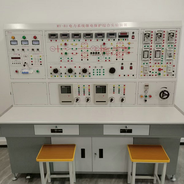 MY-B1电力系统继电保护综合实训考核装置是根据《电力系统继电保护、电力工程、电力自动化、电力系统微机保护等课程的教学要求,并结合生产实际应用和发展而研发的微机线路保护实验装置。学生通过该实验,可熟悉和掌握电力系统中常规电磁式继电器保护和微机保护的原理,保护接线和整定试验方法。装置设计紧凑,整体性强,保护装置功能完备,集保护、测量、控制、监测、通讯多种功能于一体,本装置不仅能作为电力、电气、自动化类专业线路保护的教学实验平台,而且也能作为学生熟悉和掌握电力通讯规约和多种编程软件的硬件和软件平台。本装置还配有RS-485/Modbus-RTU通信接口及上位机监控软件。