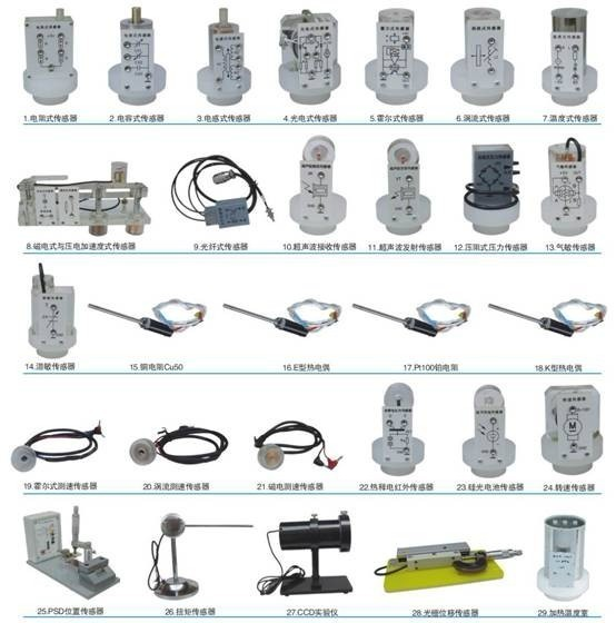 2、传感器:传感器外壳采用进口透明有机玻璃与硬聚氯制做,内部装置各种精密传感器,透明直观。每个独立传感器上印有原理图与接线口,方便实验,而且老师可以带到课堂上讲课用。