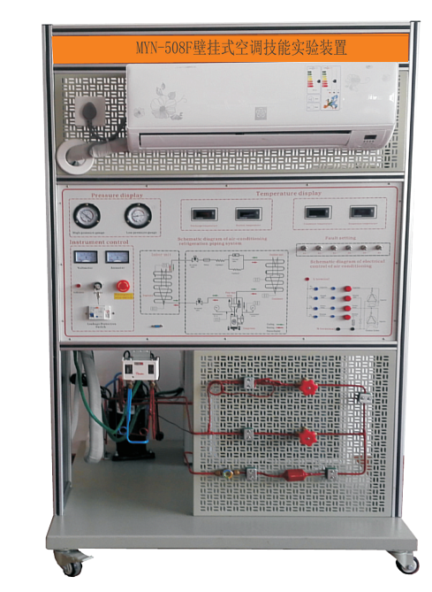 制冷制热实训设备,制冷制热实验台,空调实训台,制冷制热实训室是根据《教育行业标准-电子技术应用专业仪器设备配备标准》劳动和社会保障部发布的《家用电子产品维修工职业技能实训和鉴定设备技术规范》制冷制热实训要求而研制的,制冷与制热实训台适合高职院校、中职学校的应用电子技术、家用电器维修、电子电器应用与维修专业等专业的家用电子产品原理与维修的实训与教学。
