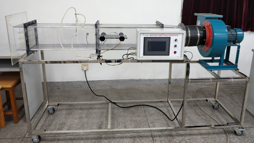 1、风道:采用矩形风道,有机玻璃材质,包括风道进口集流段、整流格栅段、风道压力和空气温度测量段、试件段、变径段(测腔体温度),测速段和风机段,风道内截面尺寸100×200mm。
