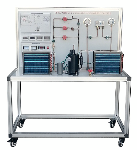 MYKT-15B制冷管路维修基本技能实训设备敞开式设计,安装有制冷管路设备,配各种电路原理图实训板,并将电路所需的电器元件安装在实训板上,学生可根据电路原理图的要求进行制冷电路的接线实训、制冷回路相关指示数据的分析、制冷回路常见故障分析等。电气控制线路为真实工业用电器,形象直观,可靠性好,使用寿命长。适用于技工院校、职业学校作为制冷基本技能的实训。
