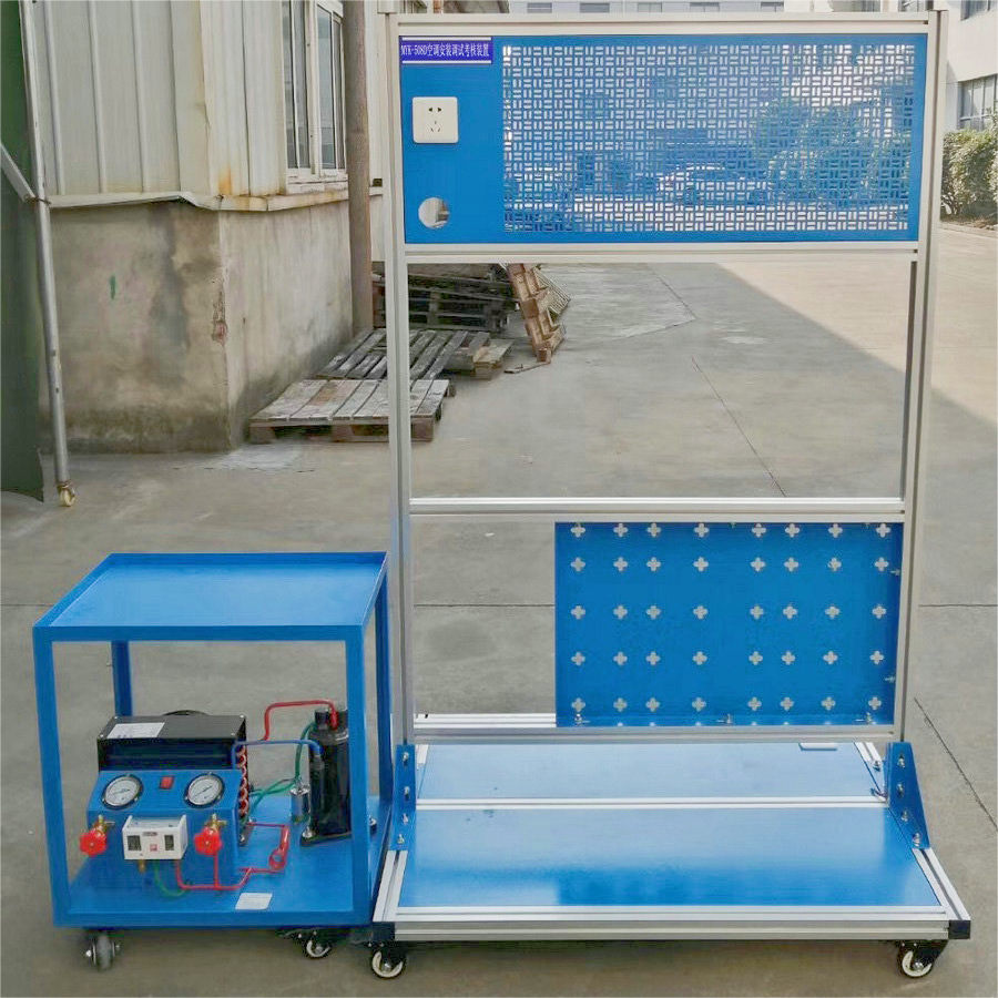MYN-508D 空调安装调试考核实训装置采用铁质框架作为实训平台,外型美观大方。支架结构方便移动安装,主要是家用分体式空调的安装、维修、调试等实训操作提供一个很好的平台。本装置配有制冷剂回收设备,可对空调机中的制冷剂进行回收,回收的制冷剂可反复使用,这样不但可以有效的节约成本而且可以保护环境。本装置还配有便携式焊炬,制冷工基本的维修工具,可使学生学习维修工具的使用和操作方法。使学生在走出学校后能真正学到实用的维修技能。本装置适合制冷相关专业的初、中级技能实训考核与鉴定。