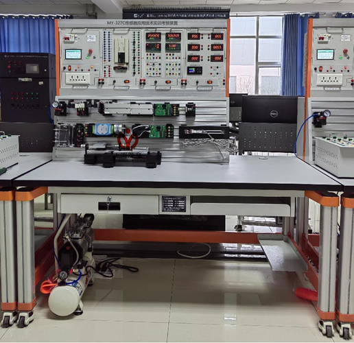 MY-327C传感器应用技术实训考核装置包括不少于十五种类型传感器的应用,可以通过自由组合进行实训。该设备的实训指导书提供至少二十个实训项目的演练,书中每一个实训项目有实训目的、实训器材、控制要求、实训步骤,当中需有大量的原理接线图、实物装配图、实物接线图加上丰富内容的表格及文字介绍。控制器件要求由挂箱、模块组成,可以根据实训需求自行选用,如 PLC 控制和 PID 控制器控制等到。