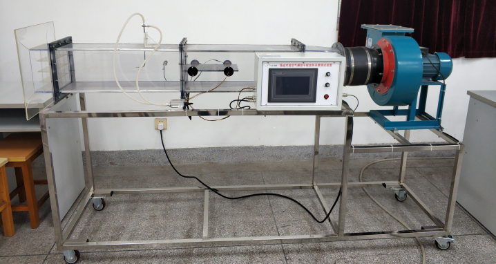 1、风道:采用矩形风道,有机玻璃材质,包括风道进口集流段、整流格栅段、风道压力和空气温度测量段、试件段、变径段(测腔体温度),测速段和风机段,风道内截面尺寸100×200mm。