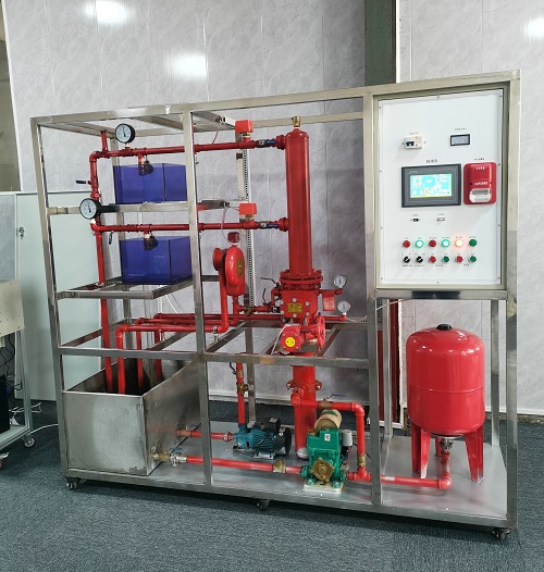 通过该装置的操作学习,学生可以对楼宇中喷水灭火系统的结构有一个全面的了解,喷淋系统与联动动控制中心系统实现联网控制,探测器与联动中心联接实现手自动控制;实现智能化大楼设计,掌握建筑物内部主要灭火设备的应用,熟悉楼宇中湿式报警阀、水流指示器、压力开关等灭火设备的结构和原理,了解消防控制中心的联动操作与设置,可与广播电话中心的控制与操作设置,了解现代建筑消防联动设备系统原理和调试,熟悉消防的控制原理和工作过程。