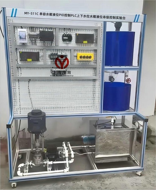 MY-511C单容水箱液位PID控制实验和PLC上下水箱液位串级控制实验台利用自动化仪表技术,计算机技术,通讯技术和自动控制技术,以实现对水箱液位的串级控制;通过PLC编程等方式实现对液位的串级PID控制;系统的控制效果既可通过水箱刻度直观地反映出来,也可通过传感器进行精确检测,通过软件显示瞬态响应指标进行对比,以便准确评估控制性能,并提供二次开发功能。