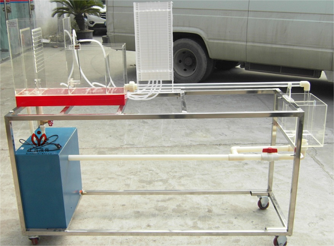 4、主要配置:储水箱; 上水管;溢流管;整流栅;溢流板;溢流箱;毕托管;差压计;阀门;压力传感器;调节阀;回水箱;流量显示装置;回水管 ;不锈钢移动式实验台。