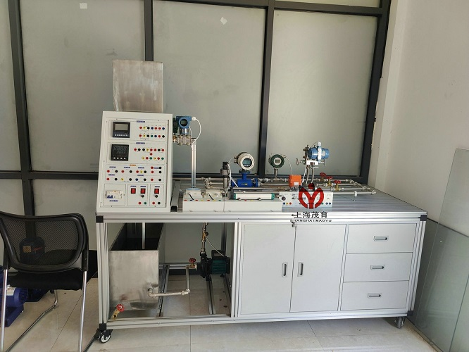 3、管道系统:采用不锈钢管,套丝连接,用专用的金属管夹固定。管道上提前安装有孔板流量计、电磁流量计、涡轮流量计、比例积分调节阀,压力传感器。