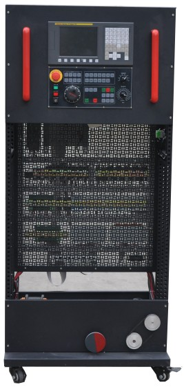 2.机床实训柜采用铁质亚光密纹喷塑结构,正面装有数控系统和操作面板,背面为机床电气柜,柜内器件布局与实际机床厂的模式一致。电气柜内的电气安装板为多功能网孔板,上面装有变频器、伺服驱动器、交流接触器、继电器、保险丝座、断路器、开关电源、接线端子排和走线槽等;电气柜底部还设有变压器和接地端子等。