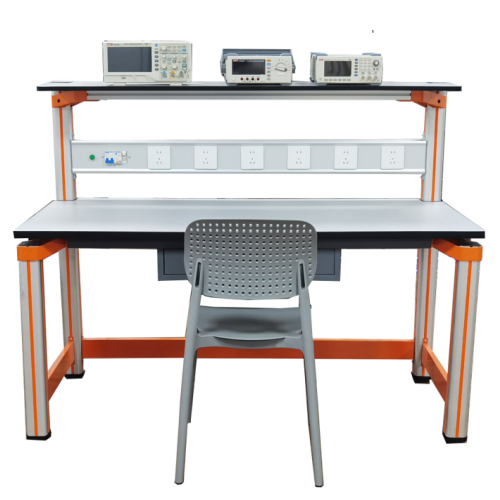 电子工艺装配实训台由仪器架、电源控制箱、实验桌、移动矮柜、学生凳等组成。实验装置支架与实验桌可组合、可拆装。支架与桌脚一体,铝合金结构。