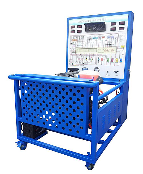 能满足电控发动机调试、运行、检测等全过程需要,通过调试、运行、检测全面系统展示控制系统的工作原理。通过智能故障的设置和检测使教师更有效的实现教学功能。更形象地满足学生实际的教学操作需要。汽车发动机实训台采用原车电控汽油发动机总成及运行附件的固定台架和运行检测控制面板台架两部分组成。发动机可进行起动、加速、减速等正常工况的实践操作,真实展示电控汽油发动机的组成结构和工作过程。