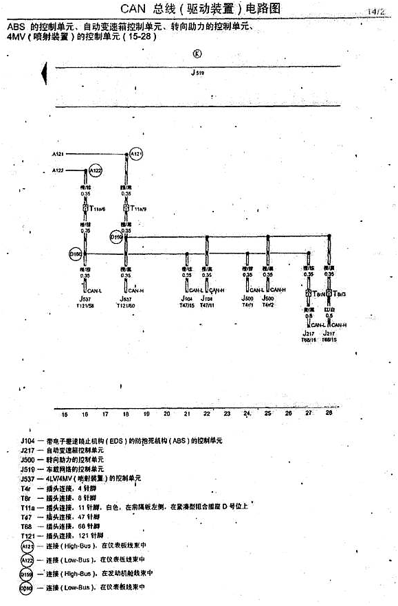 2)自诊断:检测可以使用V•A•G1551、V•A•G1552或VAS5051,地址码为44。