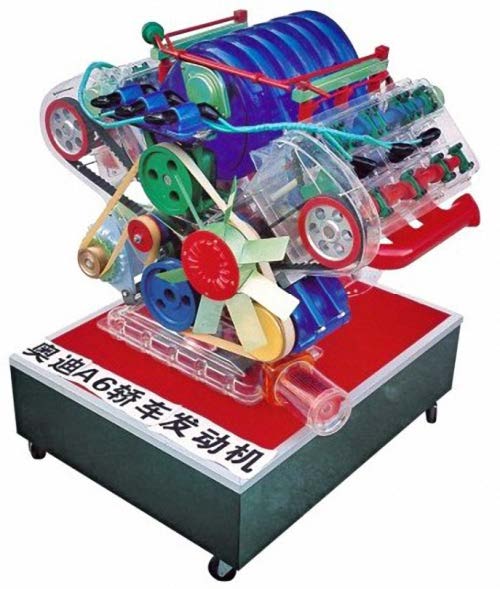 奥迪A6发动机模型采用进口有机玻璃及工程塑料、铸铝汽车部件等,用模具一次成型铸造。电机驱动、透明直观,内部结构清晰,可清楚地了解发动机内部各部件的机械结构的功能与作用,其中供油泵,冷却系润滑作示意,点火起动装置插入220V电源,整机可自动演示,便于学员较快地掌握专业知识。模型以实物0.8制作,外形寸55cm×50cm×65cm,重量:15kg