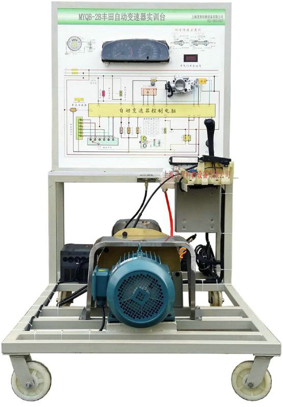 A341E自动变速器总成、自动变速器控制单元、挂档杆总成、变速器油散热装置、组合仪表、三相调速电机、节气门体总成、发动机曲轴传感器及信号盘、诊断座、压力表、故障设置系统、原车电路原理图板及检测端子、移动台架等。配任务驱动教学模式的实训指导书及台架操作说明书。