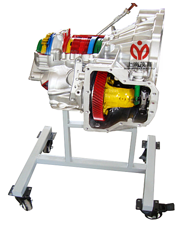 前驱手动变速器解剖模型采用实物手动变速器总成、减速电机、储物柜、可移动台架、组成。通过实训台的演示,可清楚了解内部的结构与功能,便于学生较快地掌握变速器的构造和原理,提高学生对变速器的初步认识,使学生了解变速器起到更直观更深入的教学目的,是各汽车学校对变速器系统理论和维修实训的最理想的教学设备。