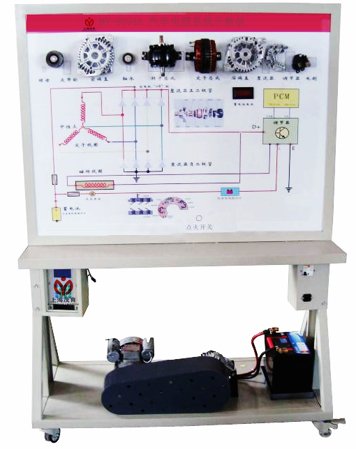 本产品选用汽车充电系统实物,展示汽车充电系统的结构与原理;面板上绘有完整的充电系统的电路图,设置有检测端子,可通过仪器仪表检测各种信号参数如电压、电阻、频率等。适用于中高等职业技术院校\普通教育类学院和培训机构对汽车充电系统的理论和维修实训的教学需要。